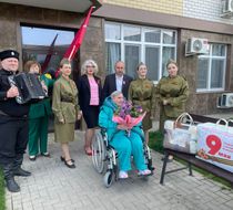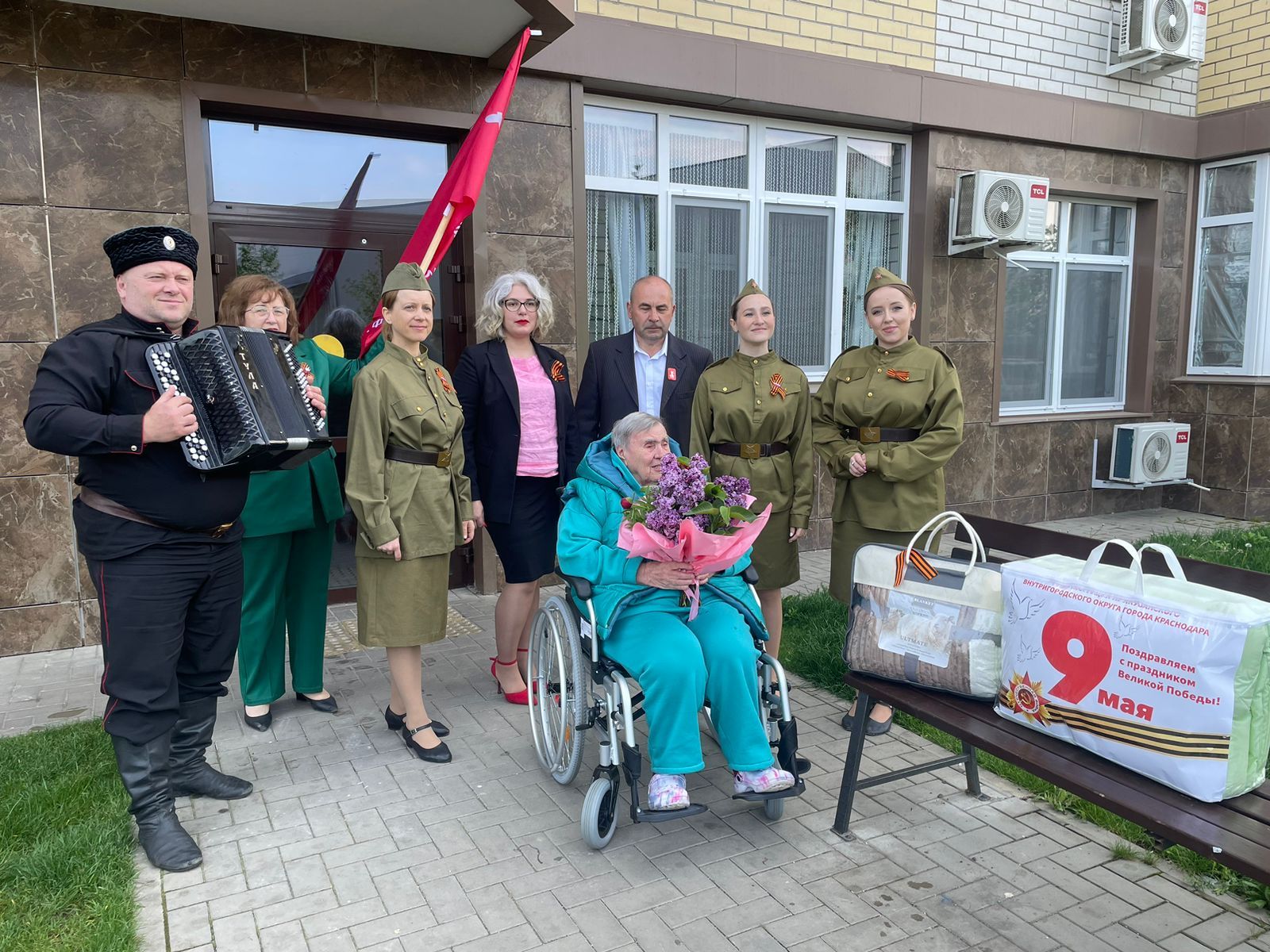 На этих трогательных встречах, наполненных воспоминаниями и мудростью, не только поздравили героев с приближающимся праздником, подарили подарки, цветы и, конечно, организовали «Концерт под окном». Всем участникам прикололи на грудь георгиевские ленты.